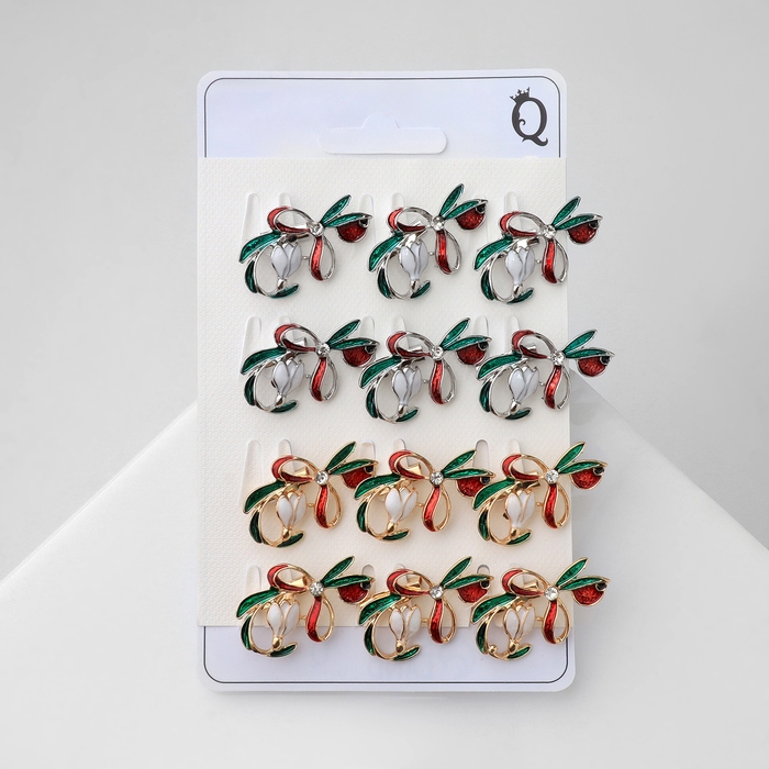 Брошь «Цветок» подснежник с бантиком, цвет МИКС (неделимая фасовка 12 шт., цена за шт.)