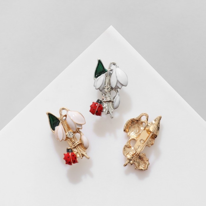 Брошь «Цветок» подснежник с божьей коровкой, цвет МИКС (неделимая фасовка 12 шт., цена за шт.)