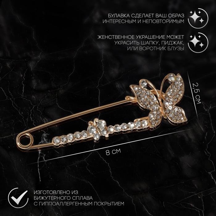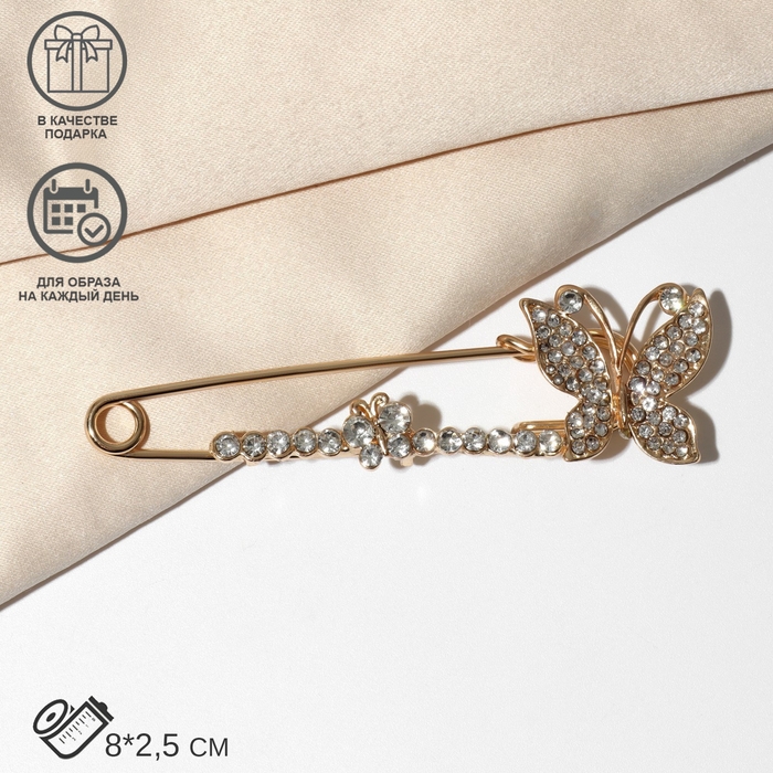 Данная булавка – настоящая находка для модниц, предпочитающих нетривиальные аксессуары. Брошь-булавка станет не только оригинальным дополнением вашего наряда, но и позволит без труда приколоть при необходимости палантин или шейный платок. Используйте её в качестве украшения шляпки, рубашки или галстука. Булавка «Бабочки» дуэт, 8 см, цвет белый в золоте внесёт особую нотку изящности в ваш образ.