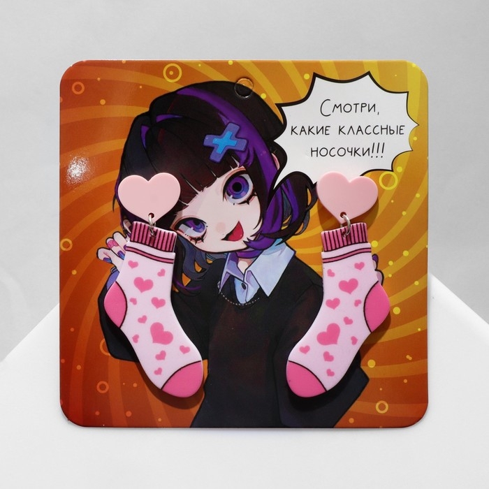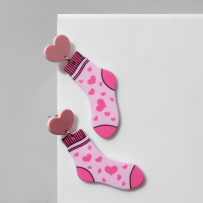 Серьги акрил «Носки», цвет розовый в серебре