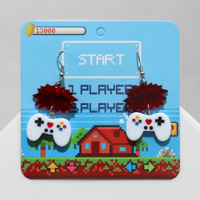 Серьги акрил «Джойстики» GAME OVER, цветные в серебре