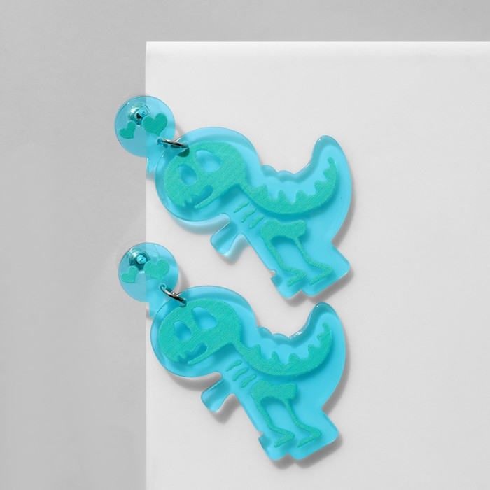 Серьги акрил «Динозавры» рентген, зелёно-голубой в серебре