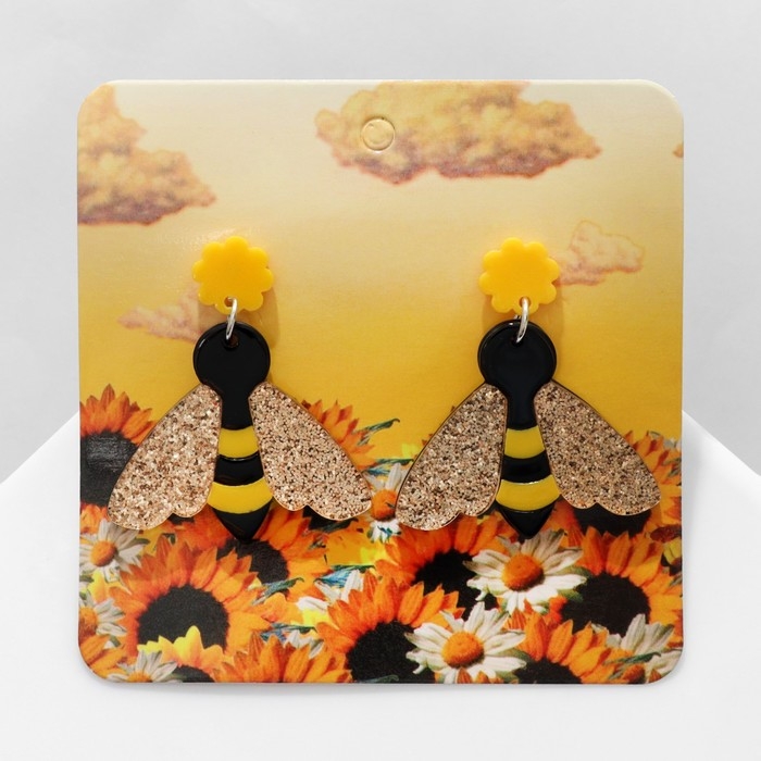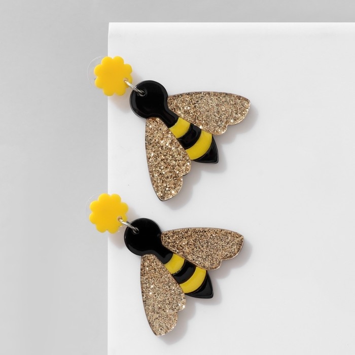 Серьги акрил «Пчёлы», цвет золотисто-чёрный в серебре