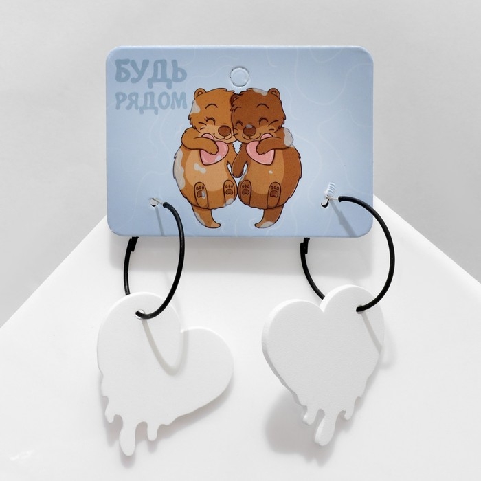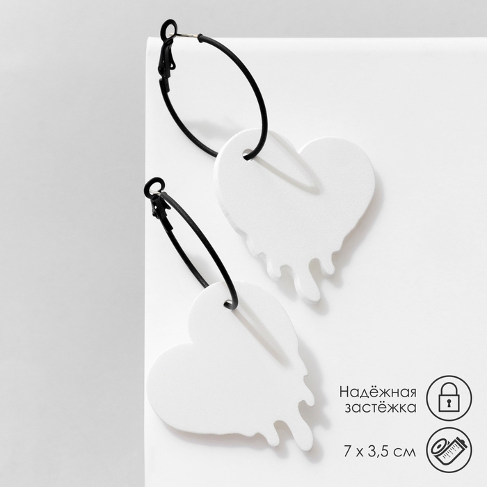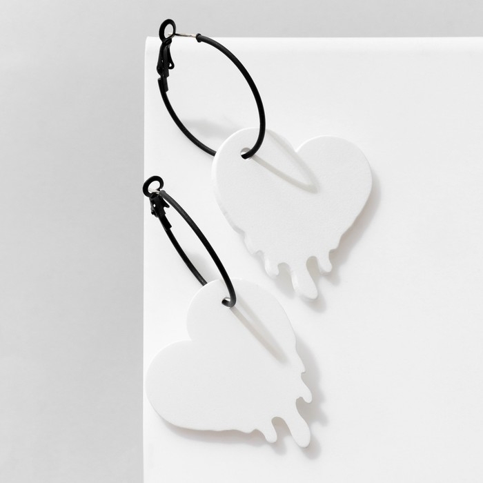 Серьги «Сердца», цвет белый в чёрном металле, d=3 см