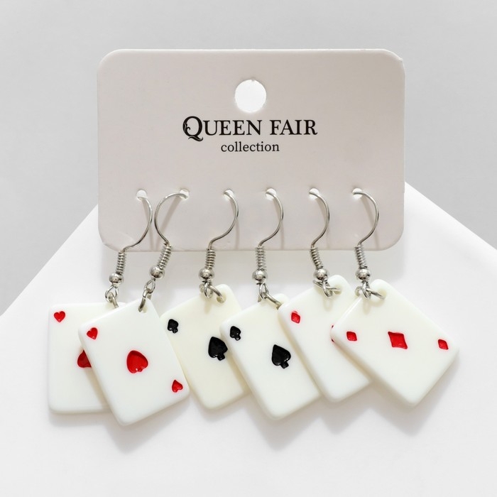 Серьги акрил набор 3 пары «Карты», цветные в серебре