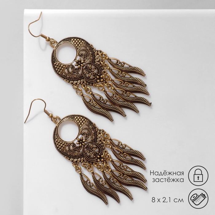 Серьги металл «Восток» богатство, цвет чернёное золото