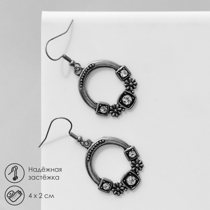 Серьги «Этника» цветочный круг, цвет белый в чернёном серебре