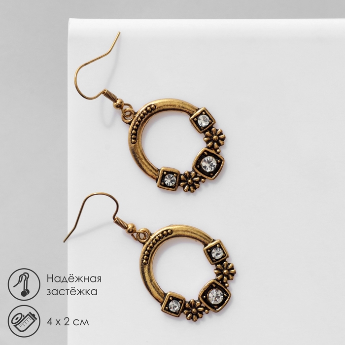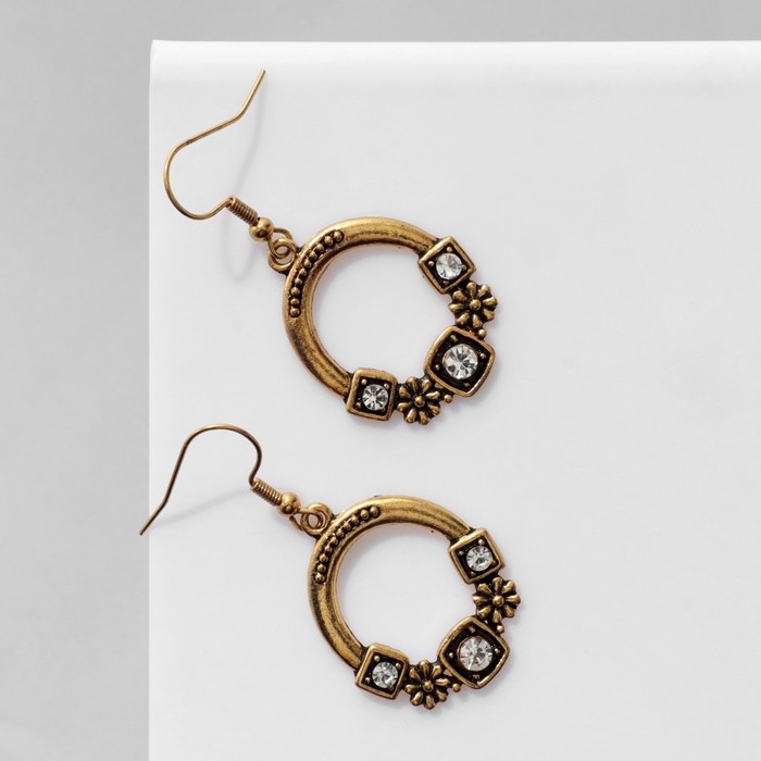 Серьги «Этника» цветочный круг, цвет белый в чернёном золоте