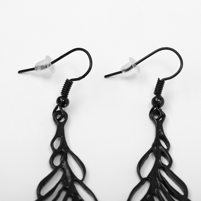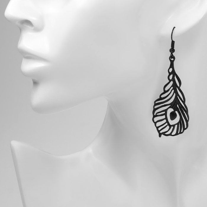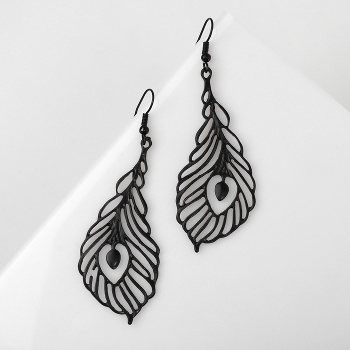 Серьги висячие «Перья» павлина, цвет чёрный матовый, 7,5 см