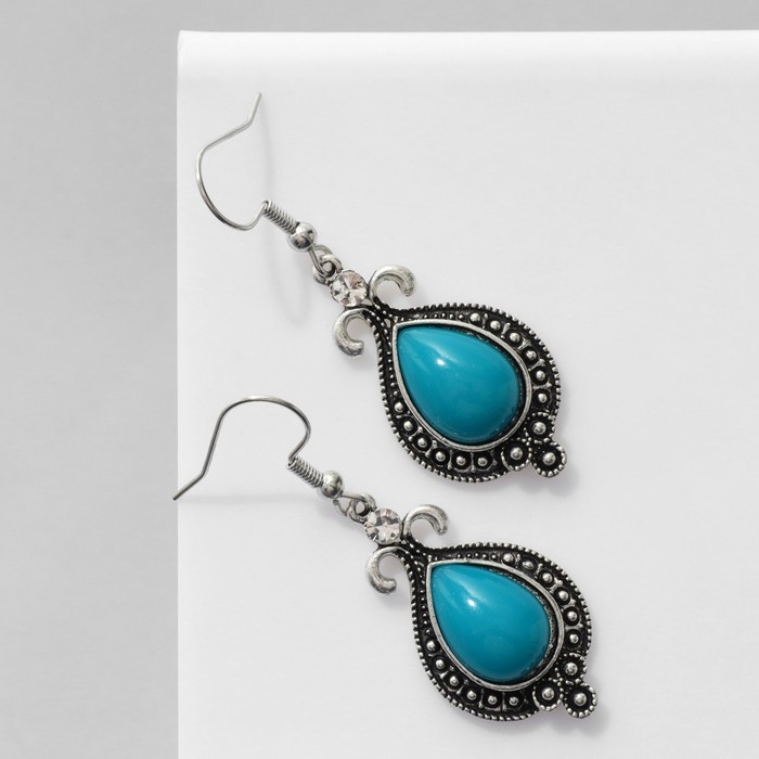 Серьги «Этника» объёмная капля, цвет бело-голубой в чернёном серебре
