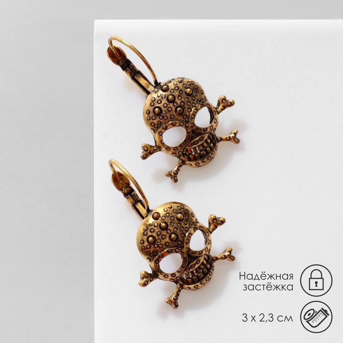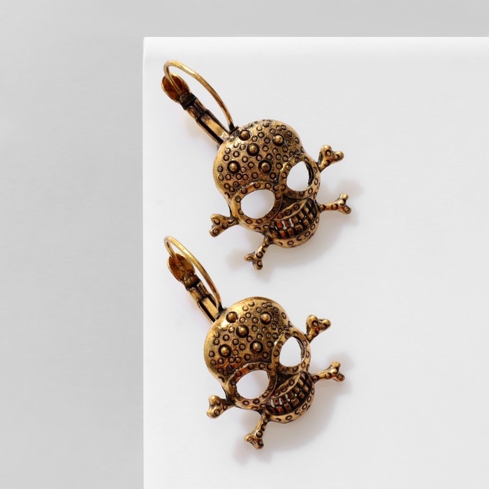 Серьги «Череп» в кругах, цвет чернёное золото