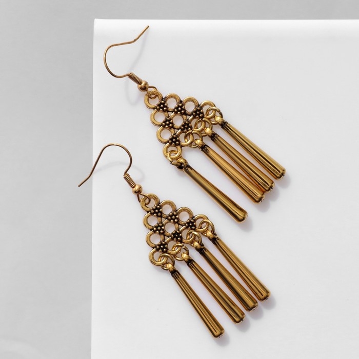 Серьги висячие «Винтаж» треугольник, цвет чернёное золото, 6 см