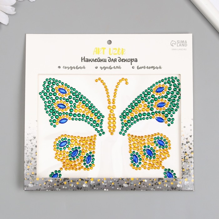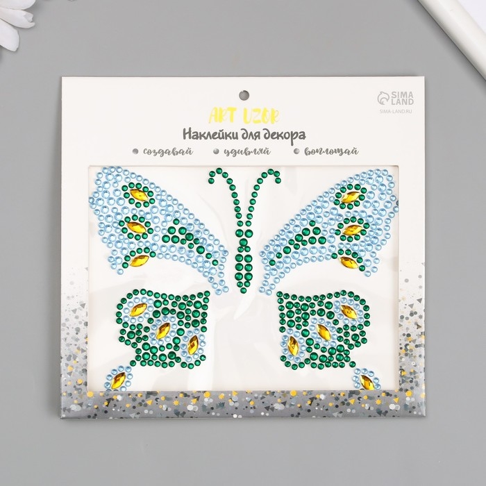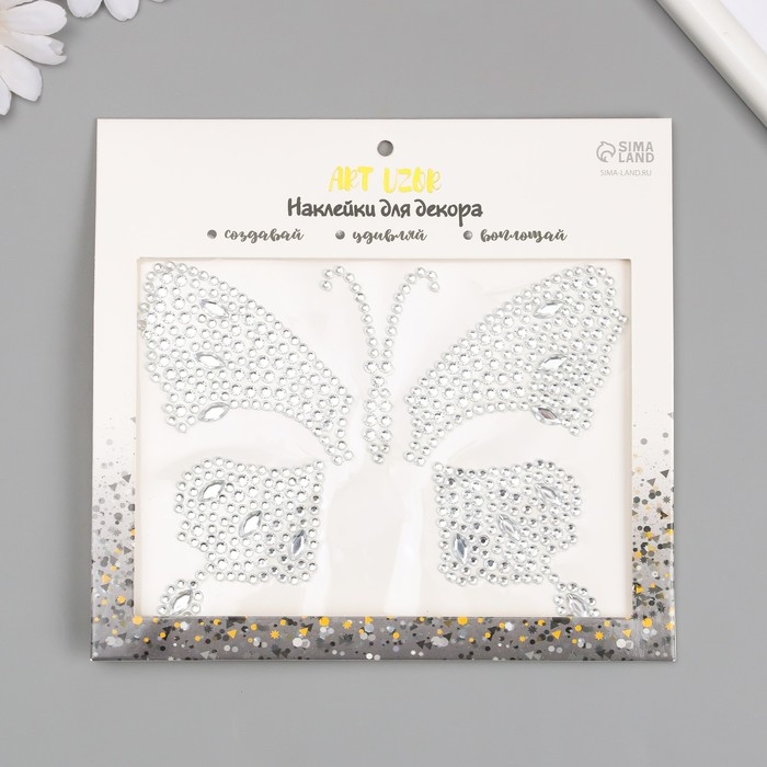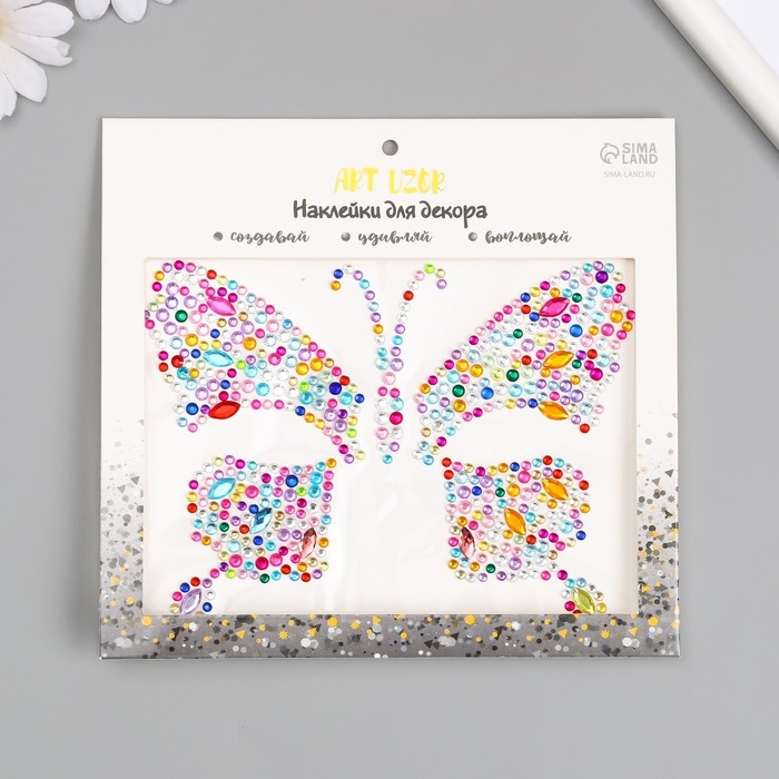 Наклейка пластик стразы "Бабочка" МИКС 12х16 см