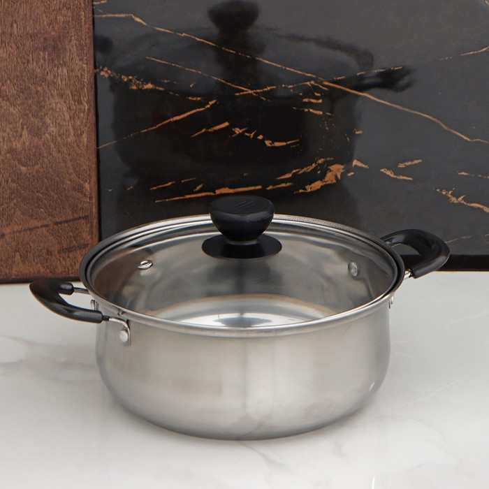 Кастрюля из нержавеющей стали Доляна «Чёрная ночь», 2,2 л, с крышкой