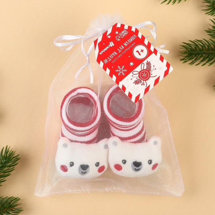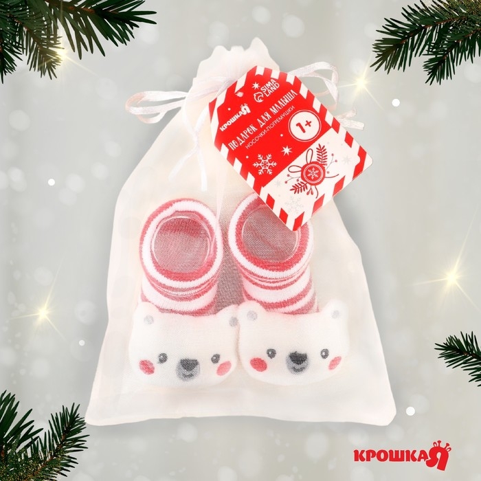 Подарочный набор новогодний: носочки - погремушки на ножки «Мишка», 2 шт., Крошка Я