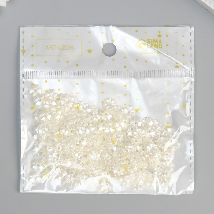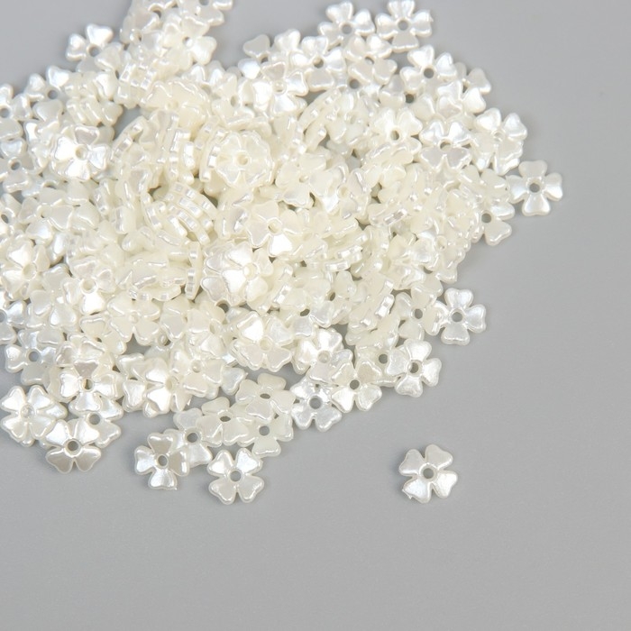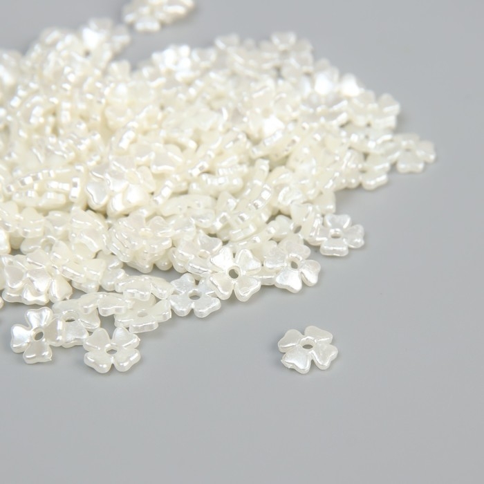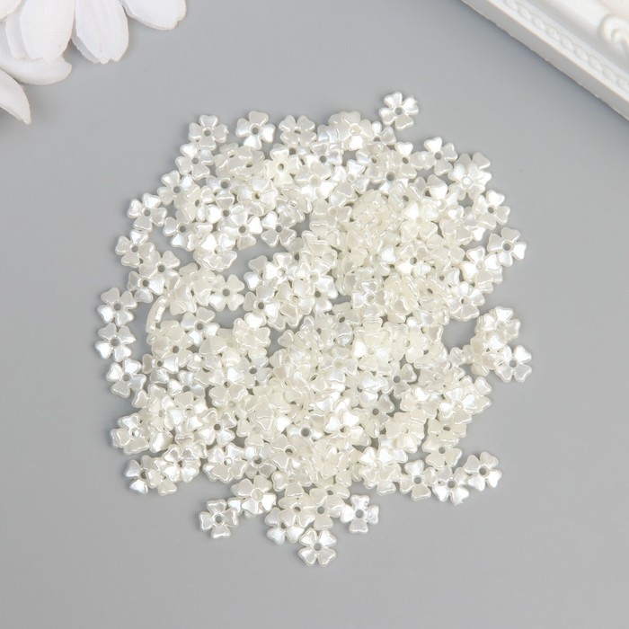 Бусины для творчества пластик "Четырёхлистники" жемчужные набор 200 шт 0,7х0,7х0,2 см
