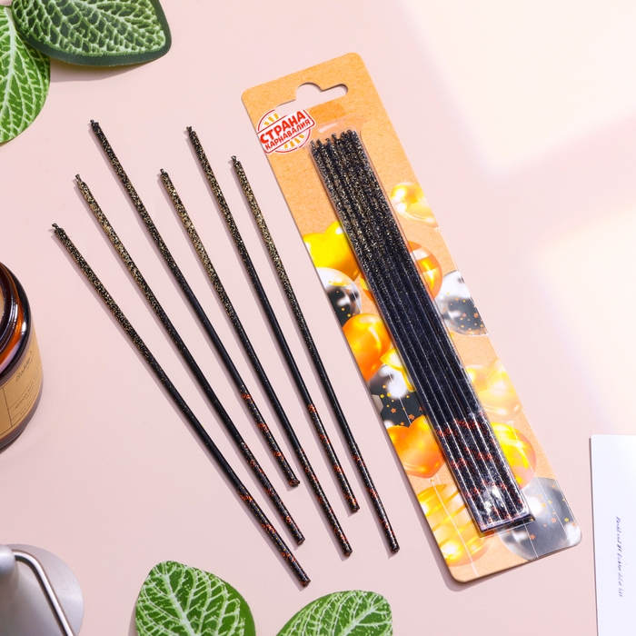 Набор свечей в торт, 6 штук "Сияние", жёлтый с чёрным, 17 см
