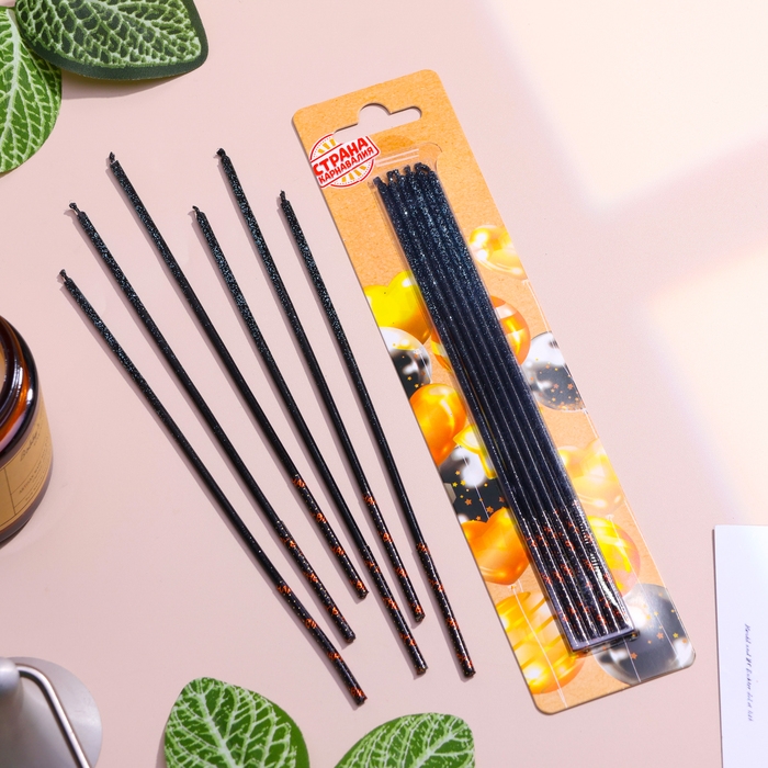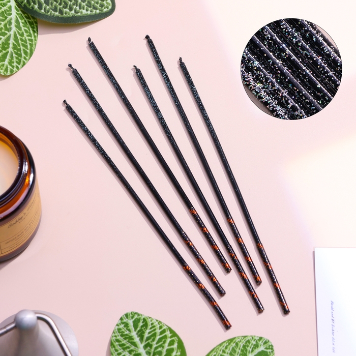 Набор свечей в торт, 6 штук "Сияние", голубой с чёрным, 17 см