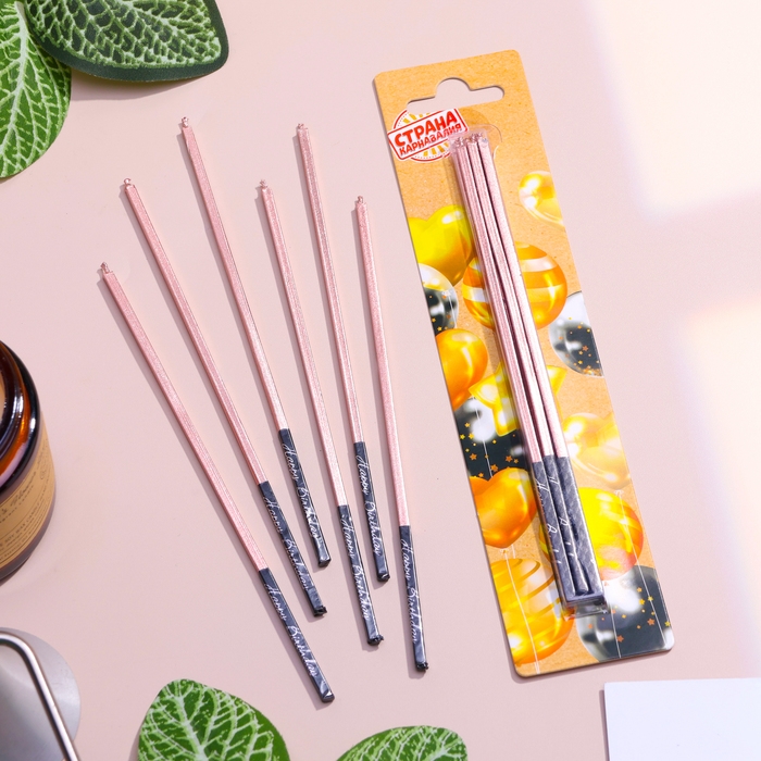 Набор свечей в торт, 6 штук "Розовый металлик", 15 см