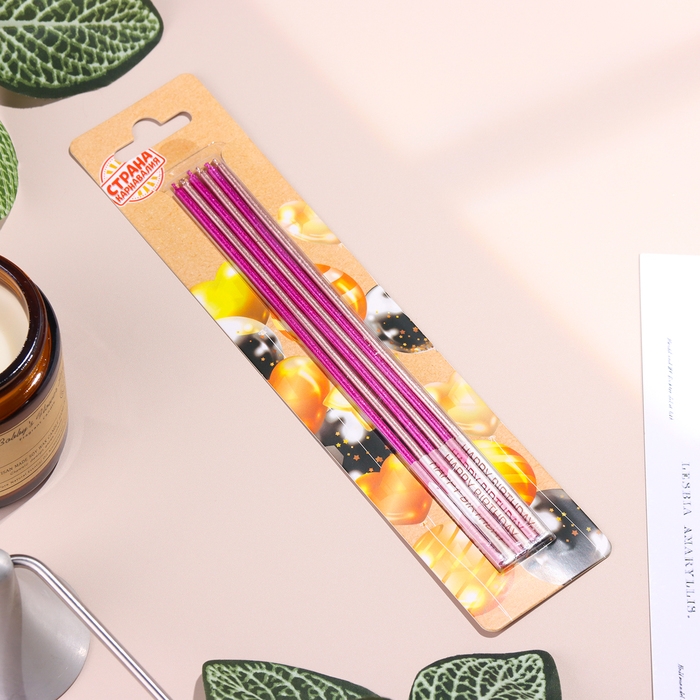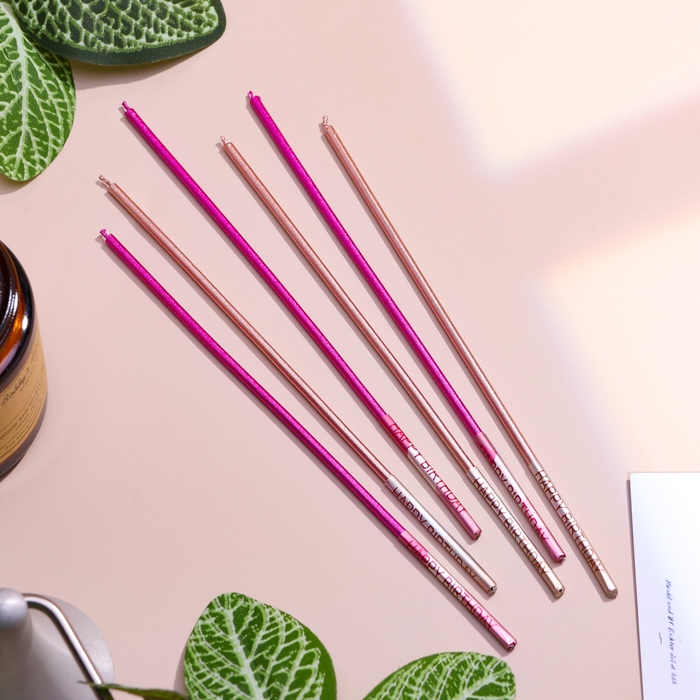 Набор свечей в торт, 6 штук "Happy", 17 см, розовый с металликом