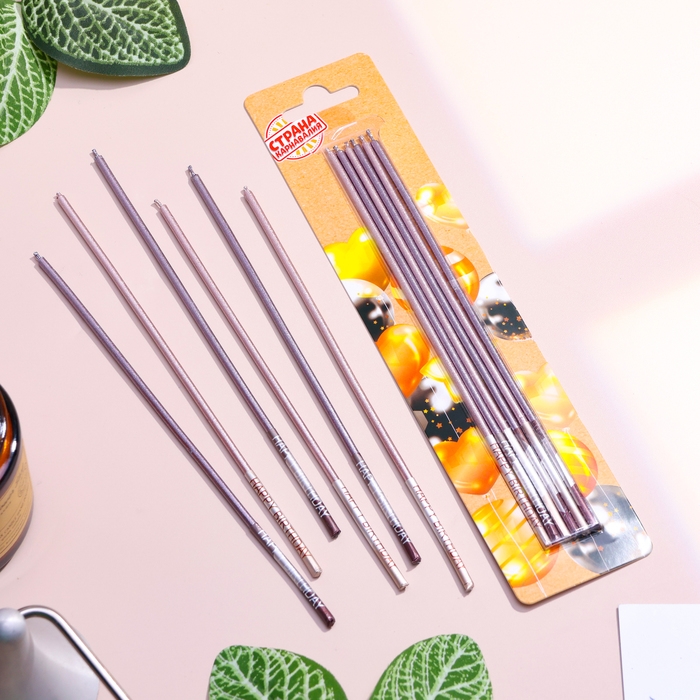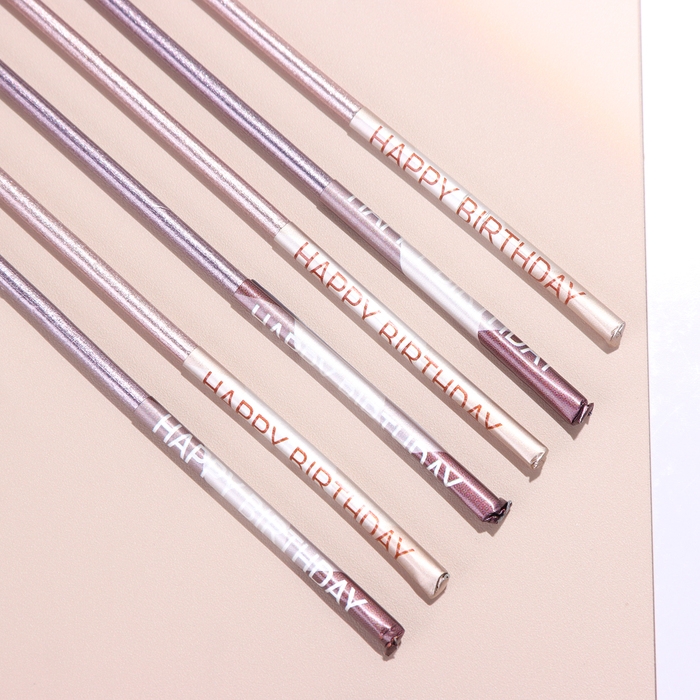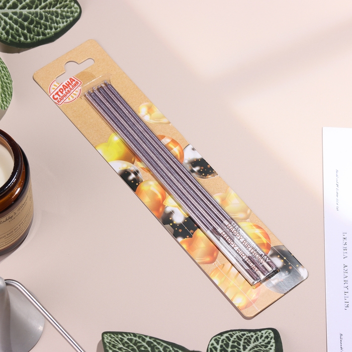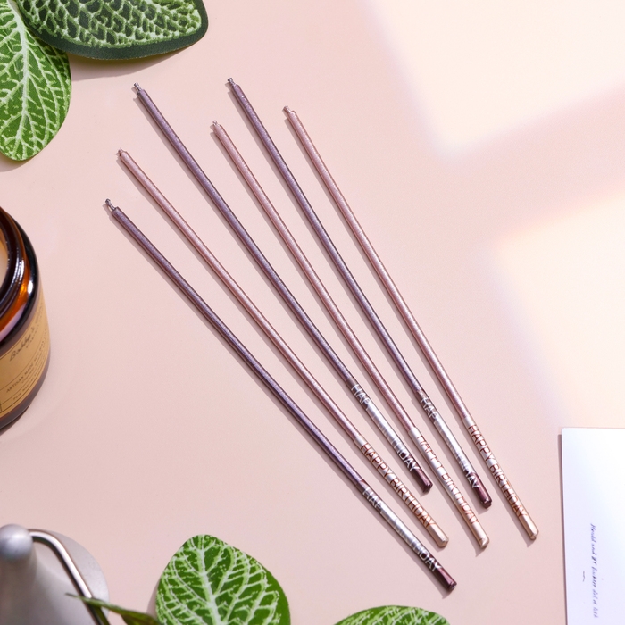 Набор свечей в торт, 6 штук "Happy", 17 см, фиолетовый с металликом