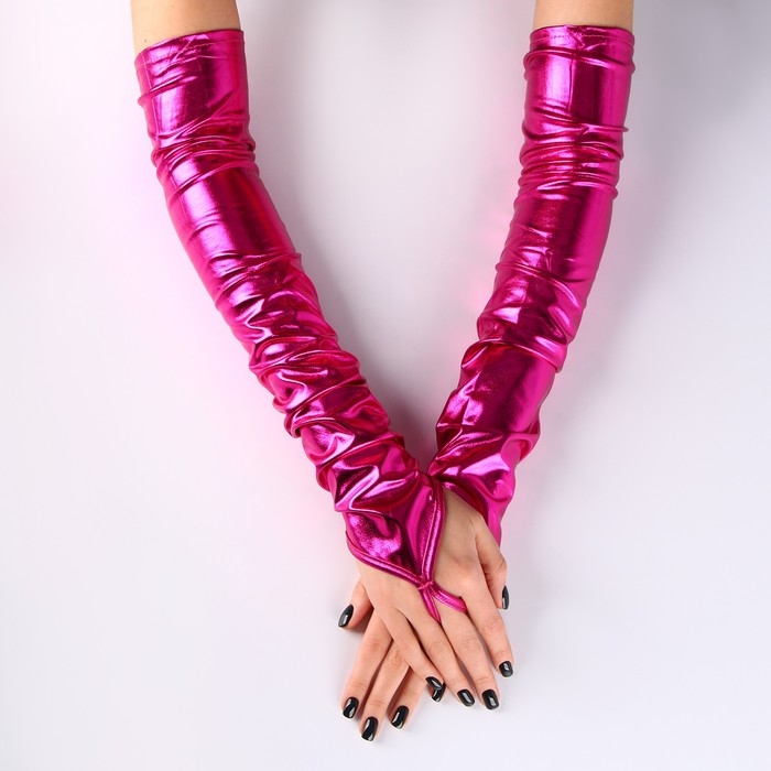 Перчатки женские через палец, цвет фуксия, длинные