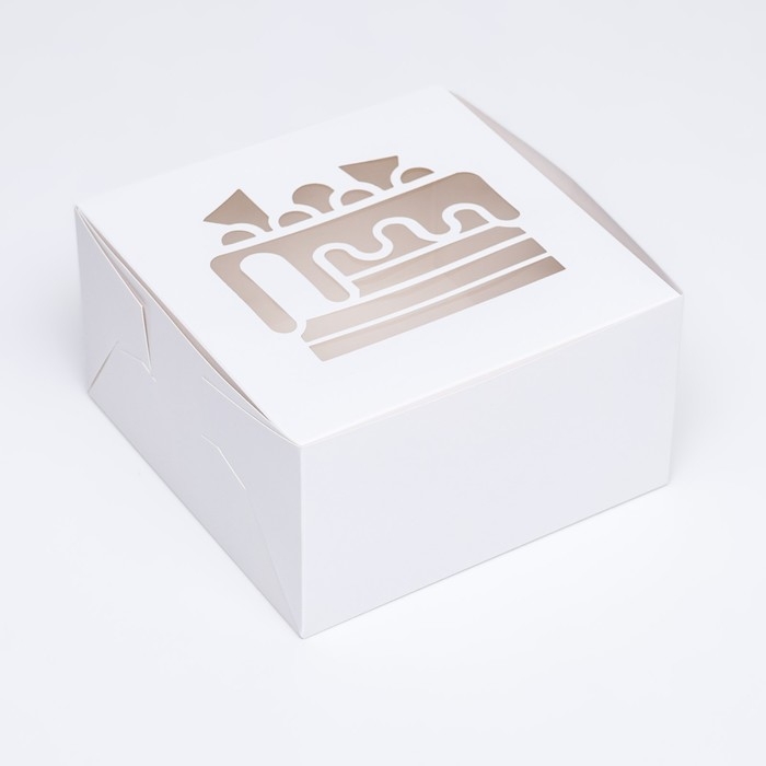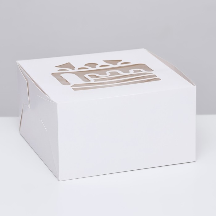 Коробка под торт, белая, с окном, 18 х 18 х 22 см