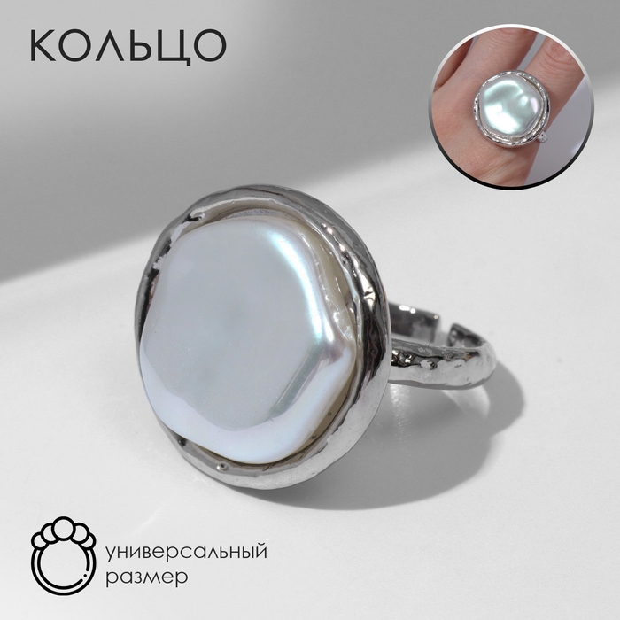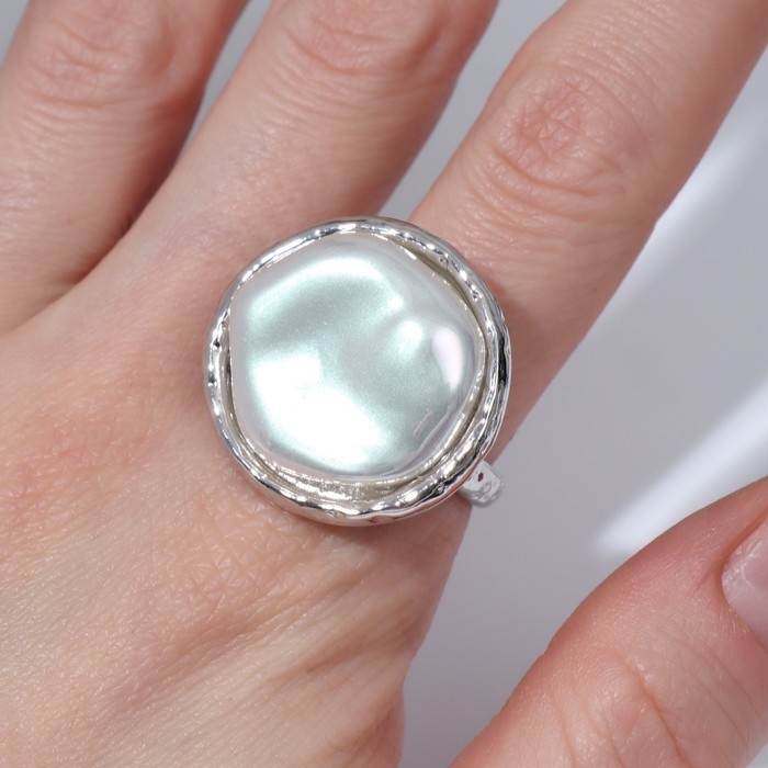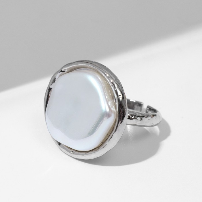 Кольцо «Перламутр» круг, цвет белый в серебре, безразмерное