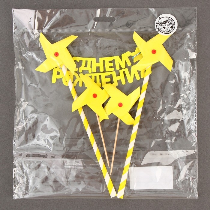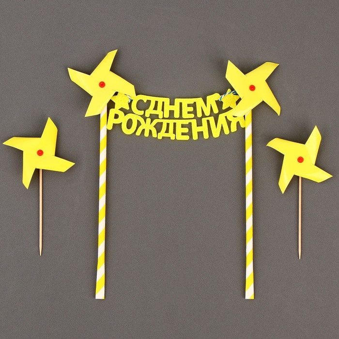 Набор топперов «С днём рождения», цвет жёлтый