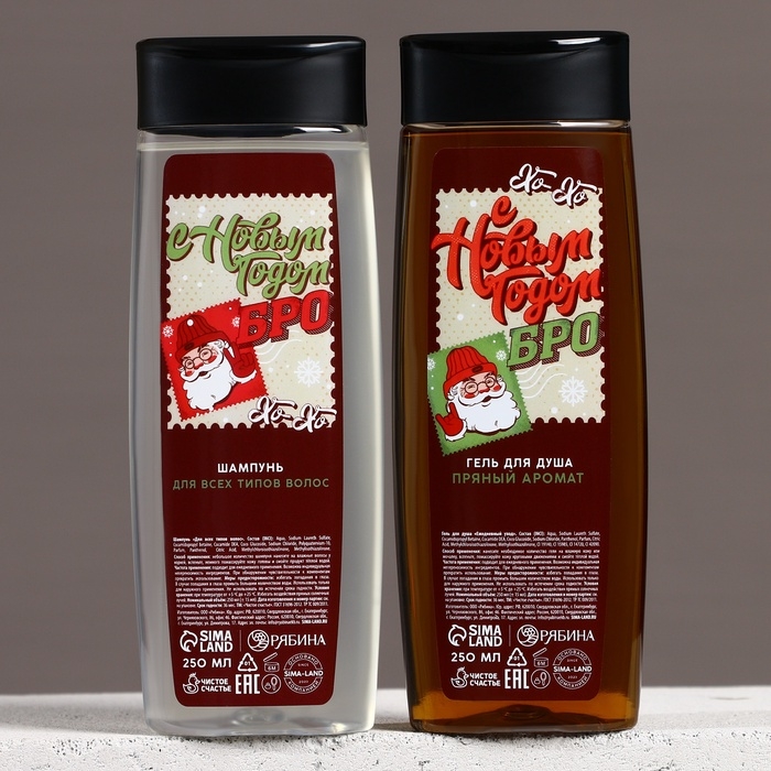 Подарочный набор косметики «С Новым Годом!», гель для душа и шампунь для волос, 2 х 250 мл, ЧИСТОЕ СЧАСТЬЕ