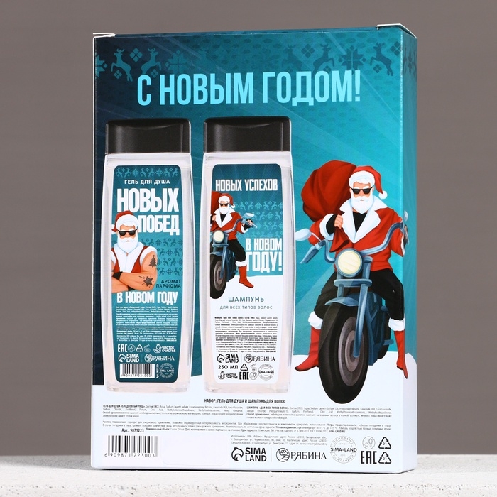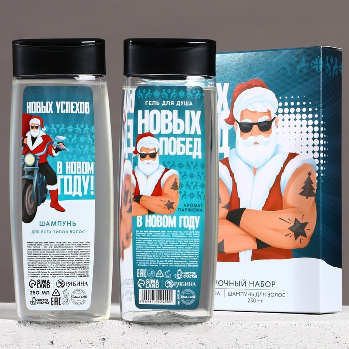 Подарочный набор косметики «Новых побед в Новом Году!», гель для душа и шампунь для волос, 2 х 250 мл, ЧИСТОЕ СЧАСТЬЕ
