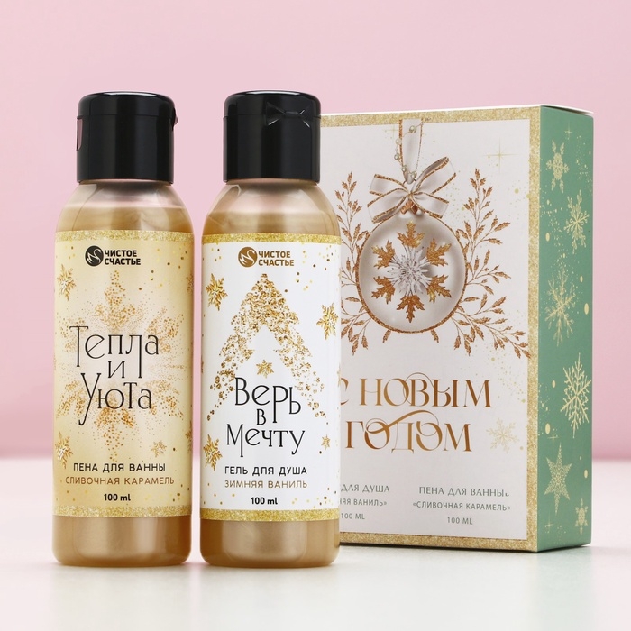 Подарочный набор косметики «С Новым Годом!», гель для душа и пена для ванны, 2 х 100 мл, ЧИСТОЕ СЧАСТЬЕ