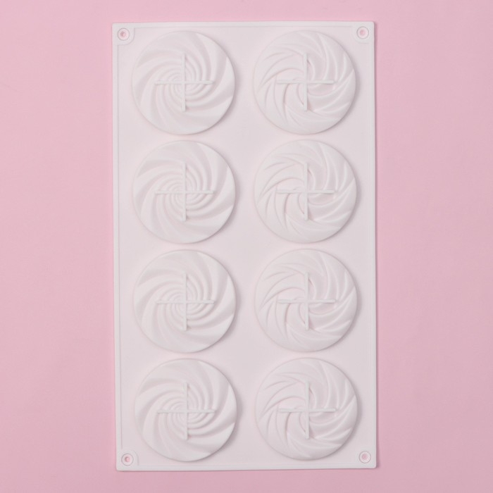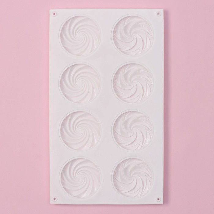 Форма для выпечки Доляна «Сладости.Завиток», силикон, 8 ячеек, 29,5×17×1,5 см, цвет белый
