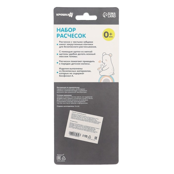 Набор расчесок для волос 2 шт. «Мишка» Basic, цвет белый