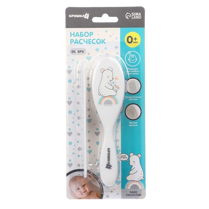 Мягкая пушистая щетка имеет удобную эргономичную ручку, улучшает кровообращение кожи головы, не царапая её. Нежный массаж расслабляет и успокаивает перед сном, а стимуляция волосяных луковиц ускоряет рост первых волос малыша. Щетка с мягким ворсом позволит пригладить волосики и придать им аккуратный вид. А с помощью расчески с частыми закругленными зубчиками удобно расчесывать запутавшиеся и скатавшиеся волосы.