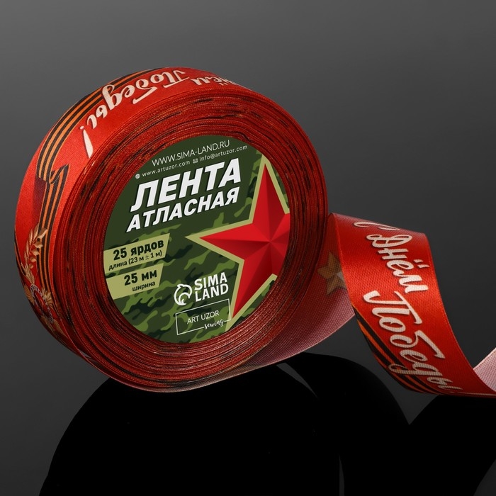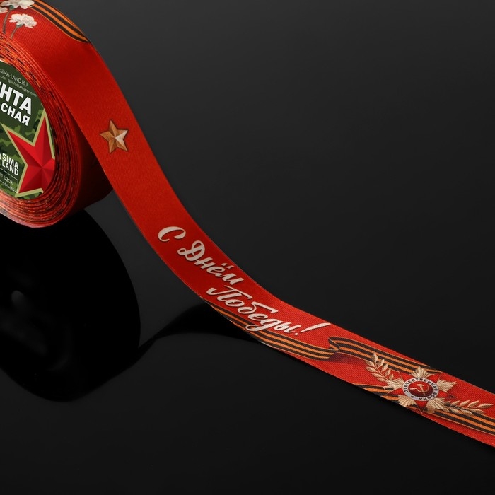 Лента атласная «С Днём Победы!», 25 мм × 23 ± 1 м, цвет красный