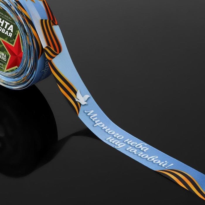 Лента репсовая «Мирного неба над головой!», 25 мм × 23 ± 1 м, цвет голубой