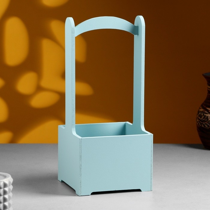 Кашпо - ящик деревянный 13,5х13,5х30 см Серо-голубой