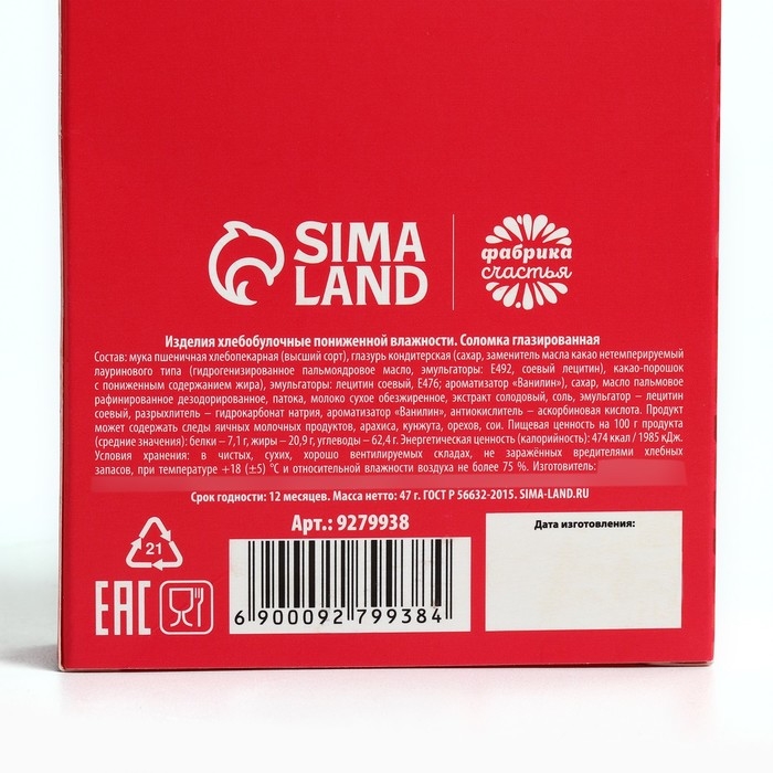 Состав: мука пшеничная хлебопекарная (высший сорт), масло растительное (подсолнечное), сахар, патока, глазурь жировая (сахар, заменитель масла какао нетемперируемый лауринового типа, какао-порошок, эмульгатор – лецитин соевый, молоко сухое обезжиренное, сухая молочная сыворотка, ароматизатор «Ванилин»), соль, эмульгатор – лецитин, разрыхлитель – гидрокарбонат натрия, дрожжи сухие хлебопекарные.