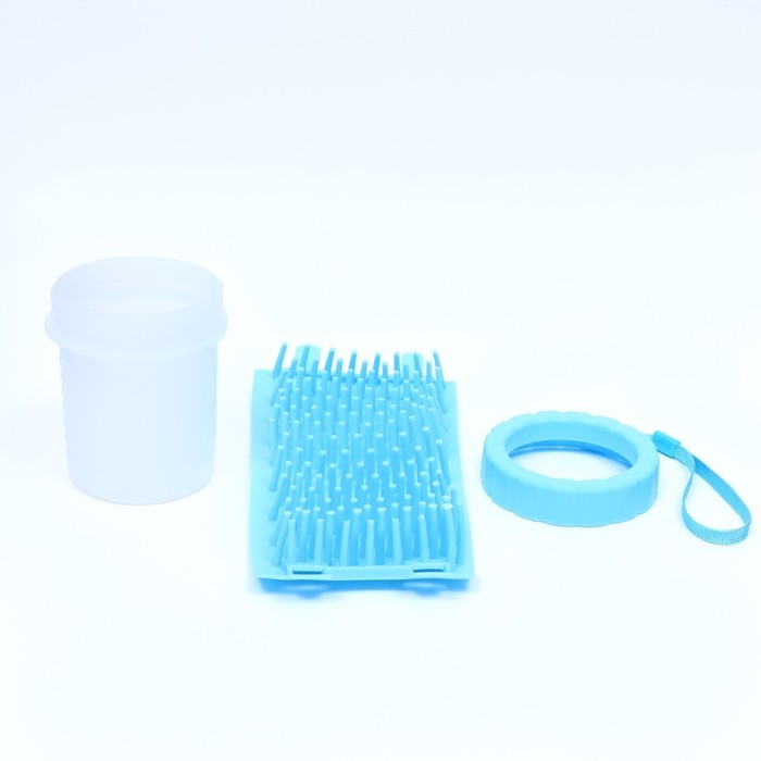 Лапомойка для кошек и собак с силиконовыми ворсинками 9 х 9 х 11 см, голубая