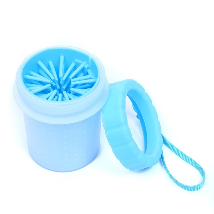 Лапомойка для средних собак с силиконовыми ворсинками 10 х 10 х 15 см, голубая