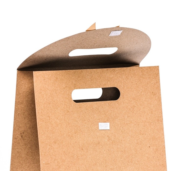Наличие прочных ручек делает коробку-пакет легкой в переноске и придает упаковке дополнительное удобство.