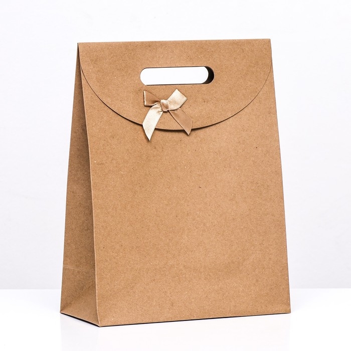 Коробка-пакет с ручкой, крафт, 32 х 23 х 11 см