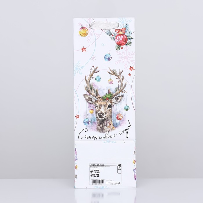 Новый год. Пакет подарочный новогодний ламинированный под бутылку "Счастливого года",13 х 36 х 10 см.
