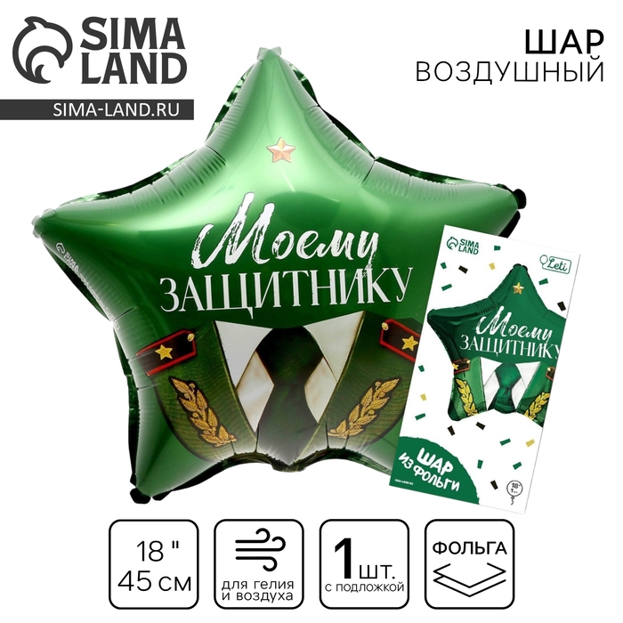 Воздушный шар фольгированный 18" «Моему защитнику» в форме звезды, с подложкой