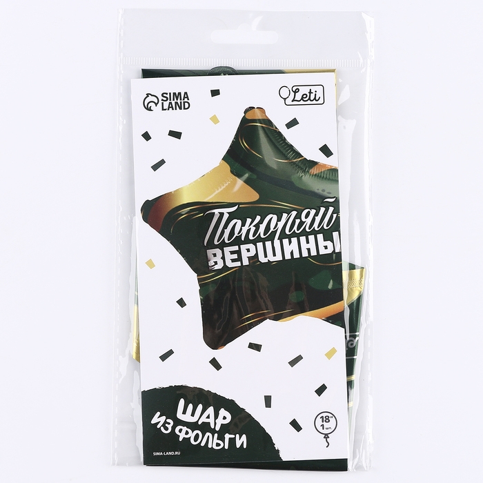 Шар из фольги в виде звезды с надписью «Покоряй вершины» подойдёт в качестве дополнения к подарку на любой праздник, например, на День рождения или на День защитника Отечества. Мотивирующая надпись подарит множество положительных эмоций!