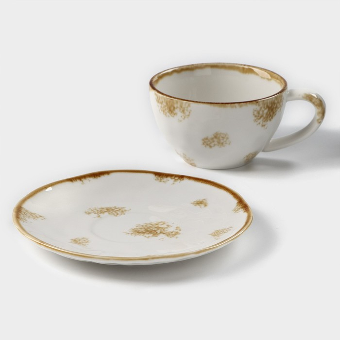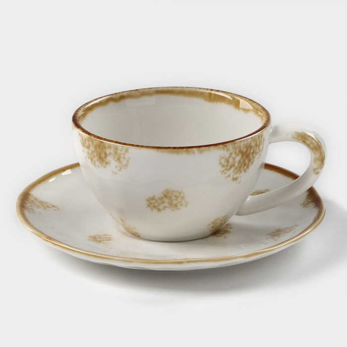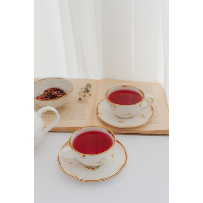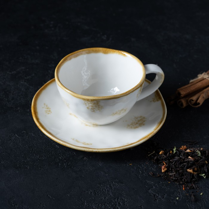 Чайная пара фарфоровая Доляна Organic Gold, 2 предмета: чашка 230 мл, блюдце d=16 см, цвет белый
