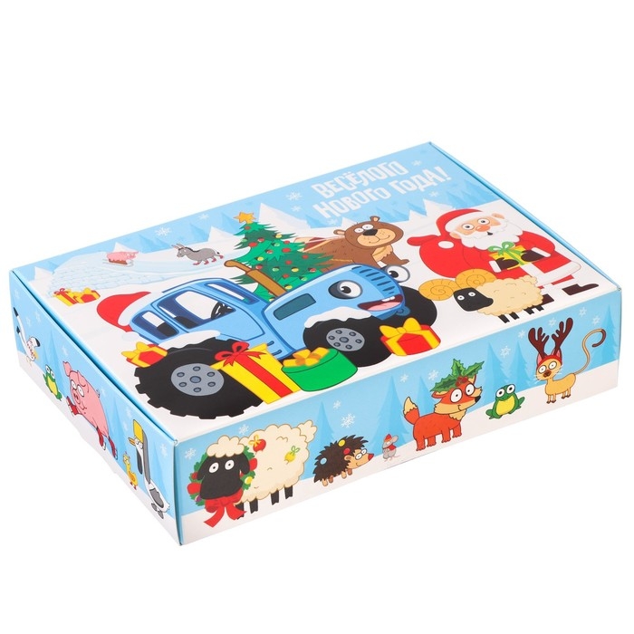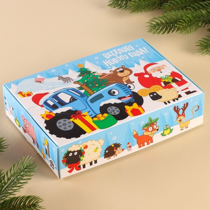 Новый год. Коробка подарочная, "Весёлого Нового года", 21 х 15 х 5 см, Синий трактор