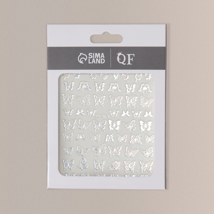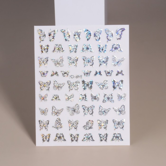 Наклейки для ногтей «Сияющие бабочки», фольгированные, голография, цвет серебристый