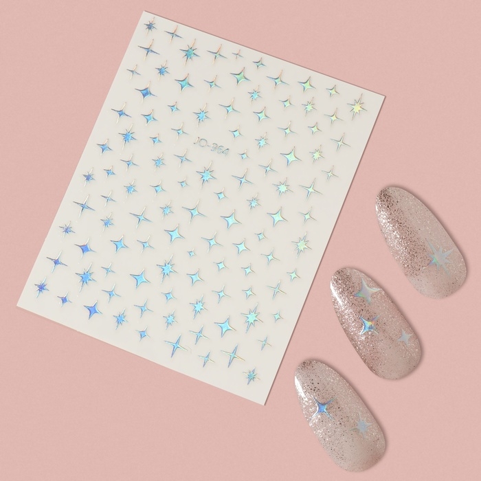 Наклейки для ногтей «Звезда», объёмные, металлизированные, цвет серебристый